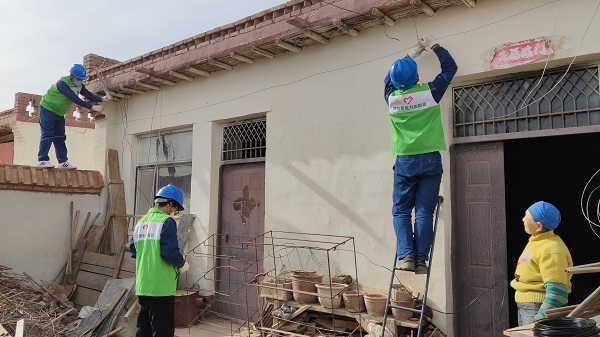 志愿者首先對老人家中用電設(shè)備和線路進(jìn)行了檢查,通過檢查發(fā)現(xiàn)接戶線老化嚴(yán)重,部分絕緣層已經(jīng)破損,存在一定安全隱患。發(fā)現(xiàn)該情況,志愿者立即與烏力吉營業(yè)所溝通,準(zhǔn)備工器具和導(dǎo)線為其重新更換接戶線,消除了安全隱患。隨后,志愿者來到老人家院外,幫助她撿拾樹枝,劈開后送到院內(nèi)充當(dāng)柴禾,并幫老人對小院子進(jìn)行了打掃。最后志愿者為老人送上米面油等生活用品和真摯的祝福。