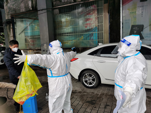 “您好,您需要的菜品我們已經(jīng)買回來了,放在您的家門口,您方便了出來取一下。”這是青年黨員覃婕這些天來重復(fù)最多的話,在中興小區(qū)還有很多和覃婕一樣的“青春面孔”,他們主動充當(dāng)小區(qū)居民的跑腿員,為大家采買送遞,正是因為有了他們的跑前跑后,居民們的基本生活物資才得以正常供應(yīng),才能夠更安心的“宅”在家里,說起他們,社區(qū)和居民都是一片褒獎之詞。