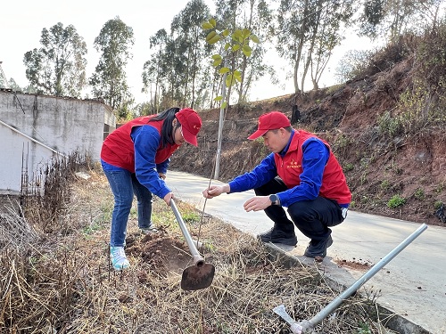 新栽的樹苗錯落有致、迎風(fēng)挺立,在春天的路邊小坡上形成了一道充滿生機的嫩綠色風(fēng)景線。共產(chǎn)黨員服務(wù)隊隊員、青年志愿者們用實際行動美化家園,助力環(huán)境保護,踐行了“綠水青山就是金山銀山”戰(zhàn)略謀劃,努力為“碳達峰、碳中和”目標(biāo)如期實現(xiàn)貢獻力量。