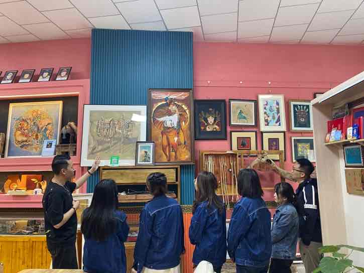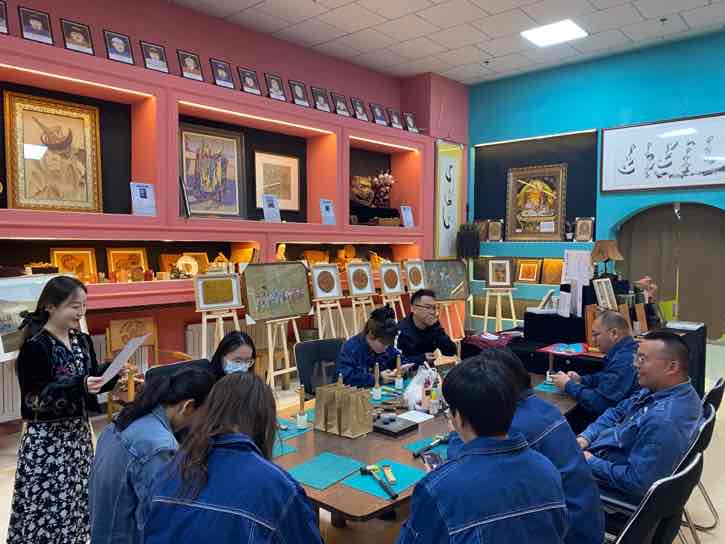 本次活動內容豐富,黨員干部職工積極前往阿拉善盟非物質文化遺產(chǎn)皮雕藝術傳承研究展示中心參觀并體驗非遺文化皮雕技藝。首先,由阿拉善盟非物質文化遺產(chǎn)傳承人“皮雕匠人”張浩老師向大家介紹皮雕技藝在阿拉善地區(qū)傳承發(fā)展的歷史以及在展的各種皮雕藝術品,并現(xiàn)場演示了皮雕制作的基本技法,緊接著帶領大家制作傳統(tǒng)皮質鑰匙包。職工們熱情高漲,紛紛動手操作,開料、刻線、描摹、染色、縫線,皮面和針線來回穿插,充分體驗到了非遺的魅力和手作的樂趣,最后在緊張刺激的民族團結知識問答題中結束了本次活動。