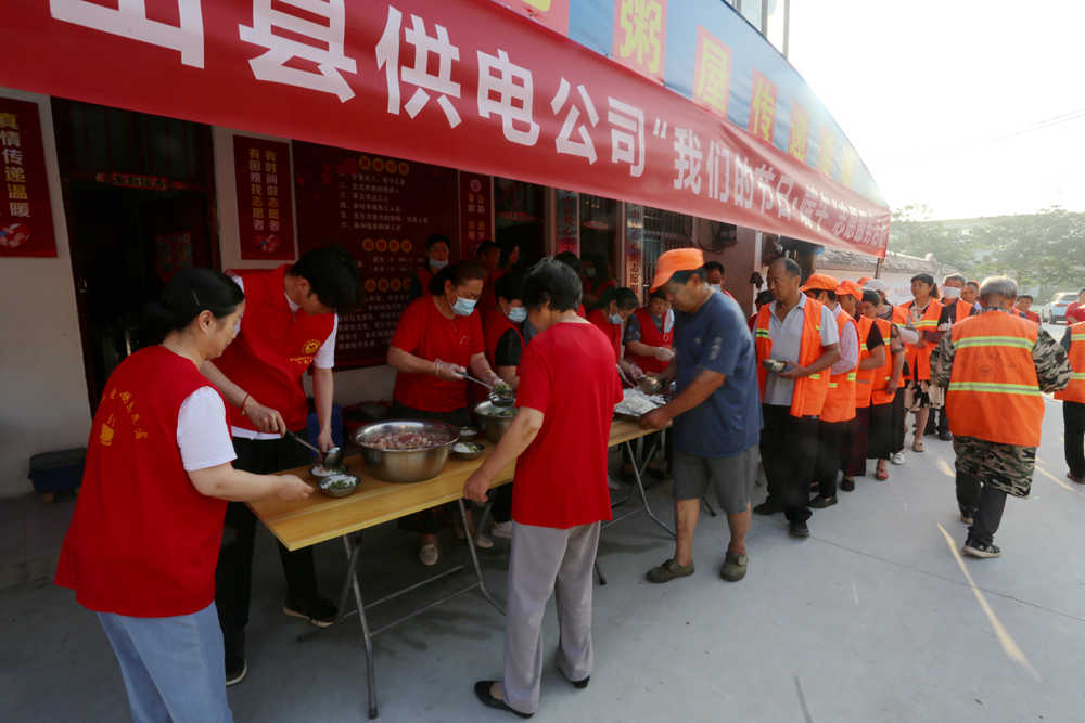 活動(dòng)當(dāng)天,羅山縣供電公司團(tuán)青志愿者們提前來到羅山縣愛心粥屋,為愛心粥屋奉獻(xiàn)愛心物資及資金,積極開展志愿服務(wù)活動(dòng),協(xié)助粥屋工作人員為環(huán)衛(wèi)工人們準(zhǔn)備小米粥、大米飯、各種小菜等早餐食物,依次引導(dǎo)環(huán)衛(wèi)工人們就坐、取餐。待用餐完畢后,該公司志愿者們及時(shí)清掃地面、整理桌椅、清洗碗筷等,并向愛心粥屋全員和前來用餐的環(huán)衛(wèi)工人送上端午佳節(jié)的問候和祝福。
