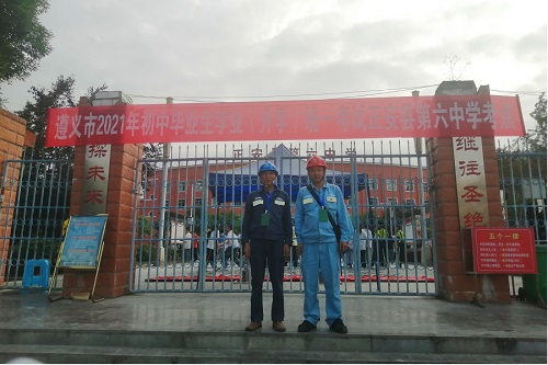 據了解,為了讓學校和考生們考試前安心、考場上放心,服務隊每天提前到達保電點,讓大家看得見身影,聽得到聲音,心中踏實,考試中,服務隊一直堅守在點不離人,直至全天考試結束重新檢查設備線路無異常后才收隊。