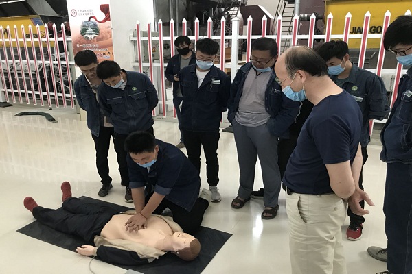 安全員李燾首先帶領(lǐng)大家觀看視頻教程,把心肺復(fù)蘇的整個(gè)過(guò)程,每一個(gè)細(xì)節(jié)都進(jìn)行了認(rèn)真的學(xué)習(xí),隨后在模擬人上進(jìn)行實(shí)際操作。安全員一邊做示范一邊講解如何掌握基本心肺復(fù)蘇的操作要點(diǎn)及注意事項(xiàng),并通過(guò)對(duì)“模擬人”實(shí)施心臟復(fù)蘇搶救操作進(jìn)行了演示,包括判斷是否喪失意識(shí)、判斷有無(wú)自主呼吸、判斷有無(wú)脈搏、進(jìn)行胸外心臟按壓、清理口腔異物、開放氣道、人工呼吸等操作要領(lǐng)的示范。