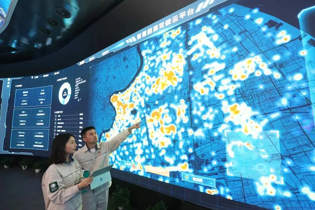 ▲國(guó)網(wǎng)上海電力員工利用智慧能源雙碳云平臺(tái)為用戶定制節(jié)能減排方案