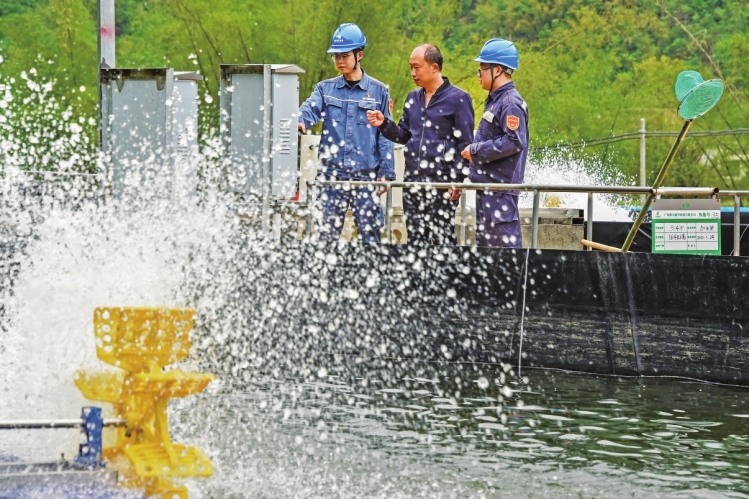 廣西新電力集團(tuán)都安供電公司工作人員為漁業(yè)養(yǎng)殖場(chǎng)提供“一對(duì)一”服務(wù)。鄧琪芳 孫靖凱 攝