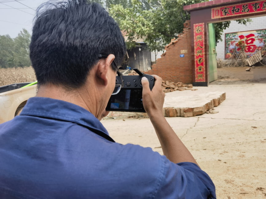 目前農(nóng)村部分地區(qū)水還未退,河北保定涿州供電公司刁窩供電所員工用無(wú)人機(jī)巡查倒桿情況,為接下來(lái)的重建做準(zhǔn)備。(陸暢)