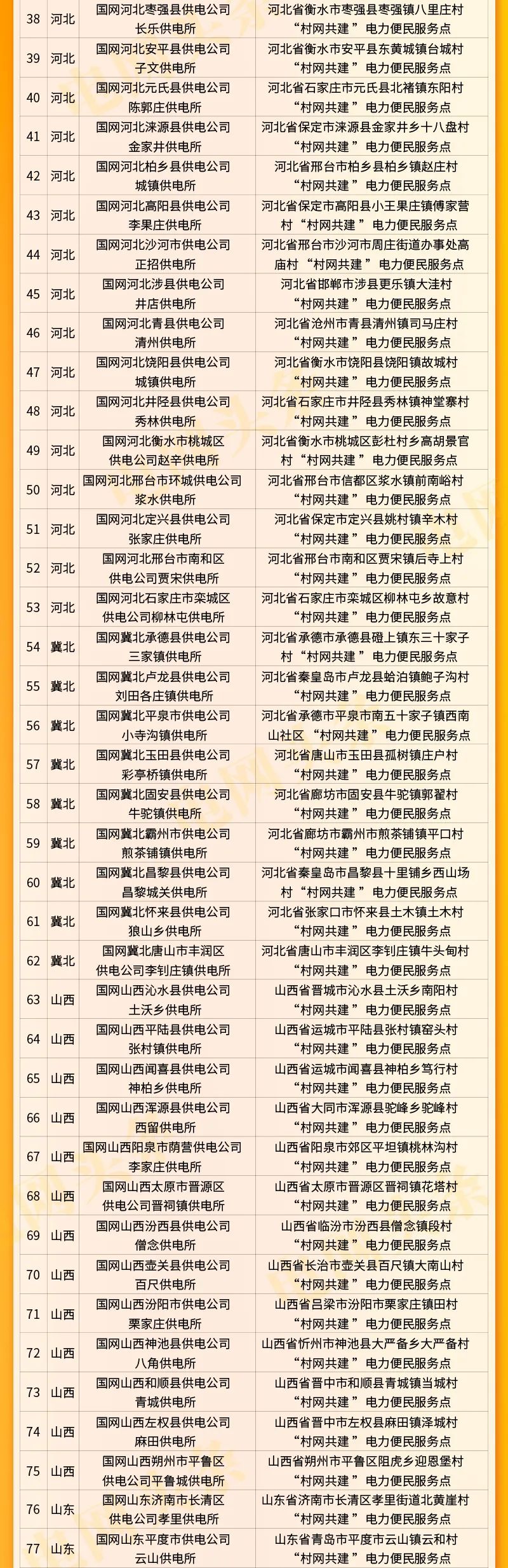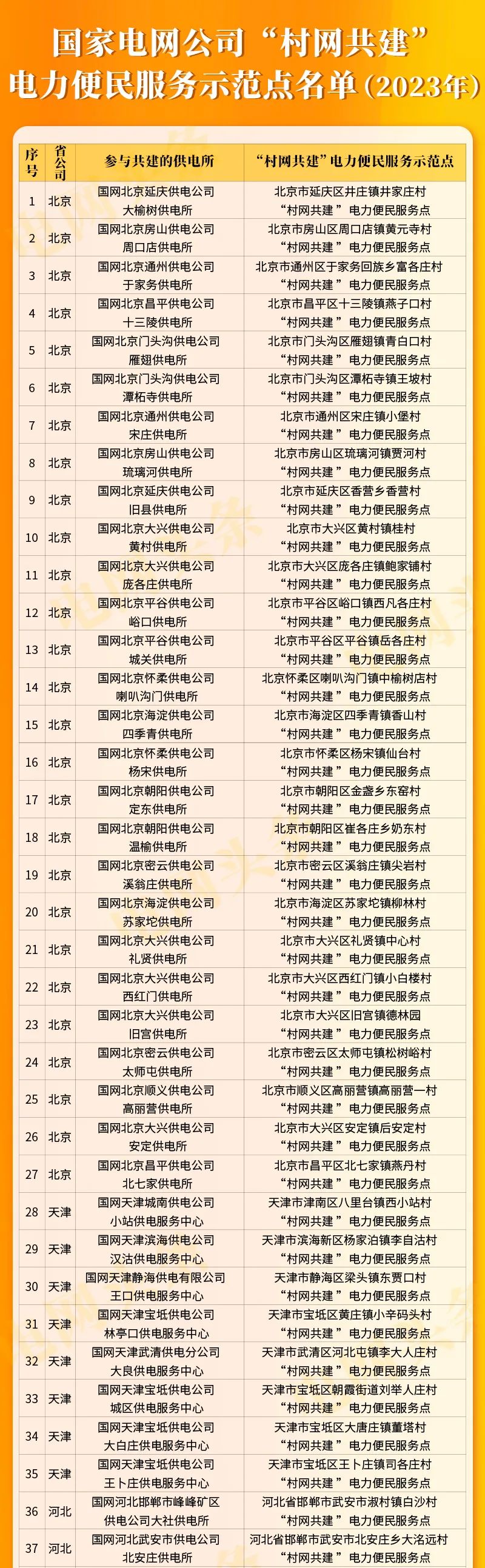 近日,國(guó)家電網(wǎng)有限公司營(yíng)銷部印發(fā)“村網(wǎng)共建”電力便民服務(wù)示范點(diǎn)名單,536個(gè)電力便民服務(wù)點(diǎn)入選。