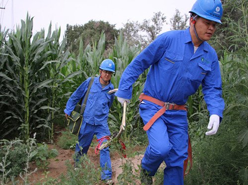 中國電力網(wǎng)訊 “未來一個月是農(nóng)田排灌高峰負荷期,我們的任務(wù)就是要確保線路和設(shè)備的最佳運行狀態(tài),做好保供電工作,幫助村民兄弟農(nóng)作物的正常生長。”烏海電業(yè)局千里山農(nóng)電所“防洪抗旱服務(wù)小分隊”隊長陳彥章和他的同事早早地就開始了一天的工作。當(dāng)前玉米生長進入接穗期,為確保玉米豐收,連日來,烏海電業(yè)局農(nóng)電處千里山農(nóng)電所工作人員奔走在田間地頭,對所轄的灌溉線路及配電設(shè)施進行檢查、維護檢修,針對發(fā)現(xiàn)的隱患和存在的問題及時整改治理,保證設(shè)備處于健康狀態(tài),確保農(nóng)作物生長期間農(nóng)戶生產(chǎn)用電安全可靠。