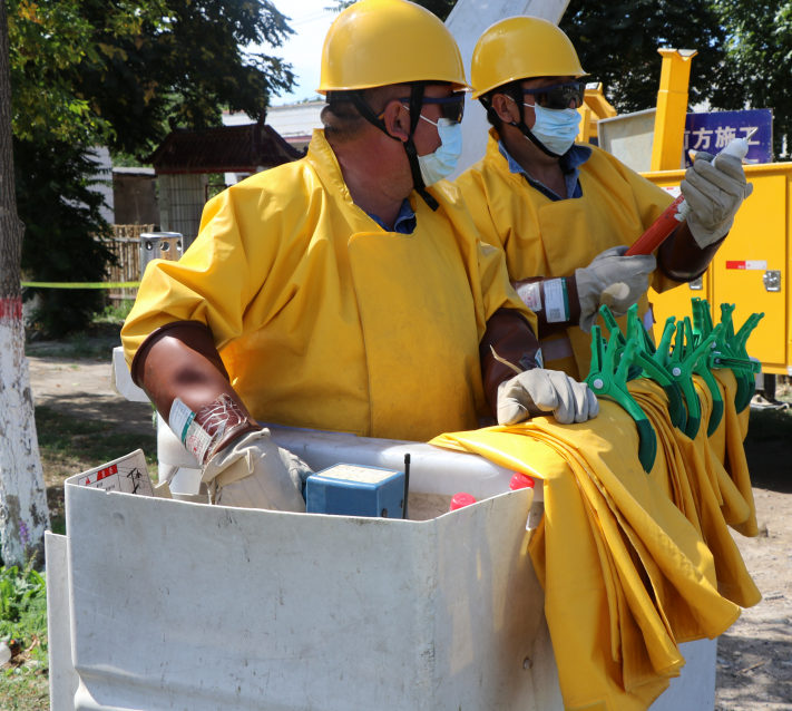 隨著絕緣斗臂緩緩下降,標(biāo)志著本次作業(yè)順利結(jié)束。“疫情當(dāng)前,發(fā)展的腳步不能停歇,政府招商引資的部分重點項目正處于建設(shè)的關(guān)鍵階段,我們要確保電力供應(yīng),全力助推各項產(chǎn)業(yè)穩(wěn)步推進(jìn)。”居馬努爾將絕緣防護(hù)服里層像被“水洗”過的棉質(zhì)工作服換下,他表示雖然特種作業(yè)環(huán)境較為艱苦,但是每一次作業(yè)都有著重要意義,每順利完成一次作業(yè)自己的內(nèi)心又多一分自豪與安寧。