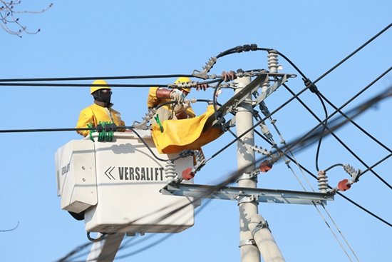 中國電力網(wǎng)訊 12月15日,氣溫降至零下8攝氏度,在濰坊壽光市北洛工業(yè)園區(qū),國網(wǎng)壽光市供電公司光明服務(wù)公司工程五隊帶電作業(yè)人員冒著刺骨的寒風(fēng)對10千伏鄉(xiāng)直線臨澤支線041號桿進行帶電接火作業(yè),及時滿足客戶用電需求,為冬季園區(qū)企業(yè)和居民安全可靠用電提供保障。