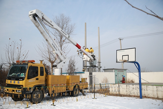 中國(guó)電力網(wǎng)訊 1月5日,在濰坊壽光市紀(jì)臺(tái)鎮(zhèn)堠子坡村,國(guó)網(wǎng)壽光市供電公司帶電作業(yè)人員在寒潮來(lái)臨之前,對(duì)該村存在安全隱患一臺(tái)250千伏安變壓器更換跌落開(kāi)關(guān),及時(shí)消除設(shè)備運(yùn)行隱患,保障迎峰度冬期間居民用電無(wú)憂。
