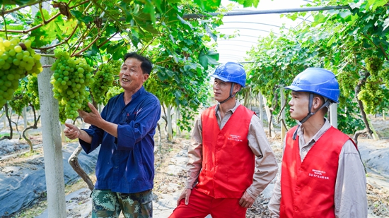 本網(wǎng)訊 “多虧了供電公司提前為我們安裝變壓器、架設(shè)線路,讓我們的冷庫(kù)和灌溉系統(tǒng)全天候工作,葡萄才能獲得大豐收。”8月23日,遞鋪街道熊出沒(méi)葡萄園內(nèi)的農(nóng)戶指著一串串青翠欲滴的葡萄對(duì)前來(lái)檢修用電的紅船共產(chǎn)黨員服務(wù)隊(duì)激動(dòng)地說(shuō)道。