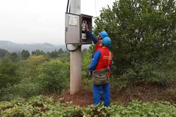 共產(chǎn)黨員服務(wù)隊隊員檢查用電線路設(shè)備