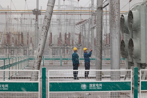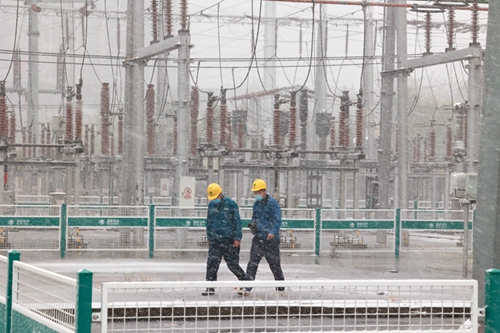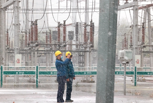 中國電力網(wǎng)訊 11月7日,國網(wǎng)壽光市供電公司變電運(yùn)維人員冒著風(fēng)雪,對220千伏延慶變電站進(jìn)行特巡,對站內(nèi)控制設(shè)備、開關(guān)設(shè)備進(jìn)行全面巡視和測溫,及時(shí)發(fā)現(xiàn)并消除隱患,全力保障惡劣天氣下企業(yè)及居民可靠用電。