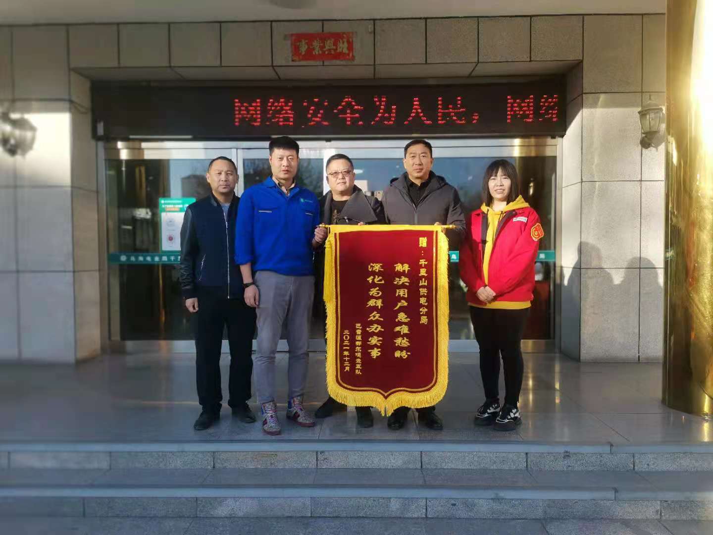 中國(guó)電力網(wǎng)訊 近日,烏海市巴音溫都爾嘎查五隊(duì)物業(yè)公司宋經(jīng)理及村民何茂將一面印有“解決用戶(hù)用戶(hù)急難愁盼、深化為群眾辦實(shí)事”的錦旗送到烏海市千里山供電分公司副經(jīng)理默日根、俞佳麗的手中,感謝該公司在巴音溫都爾嘎查五隊(duì)用電的辦理過(guò)程中給予的大力支持和優(yōu)質(zhì)、高效的供電服務(wù)。