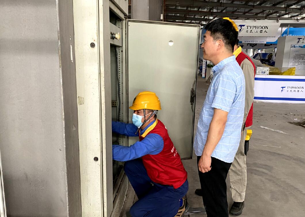 悶熱的黃梅天,汗水很快就浸濕了工作人員工作服,一旁的展館工作人員請工作人員到旁邊房間喝點茶休息一下,工作人員卻絲毫沒有要停下來的意思。“因為展會有注塑機(jī)等大型用電設(shè)備,在檢查時,內(nèi)部線路也要格外注意,時間緊張,我們就不休息了。”韓高權(quán)說道。