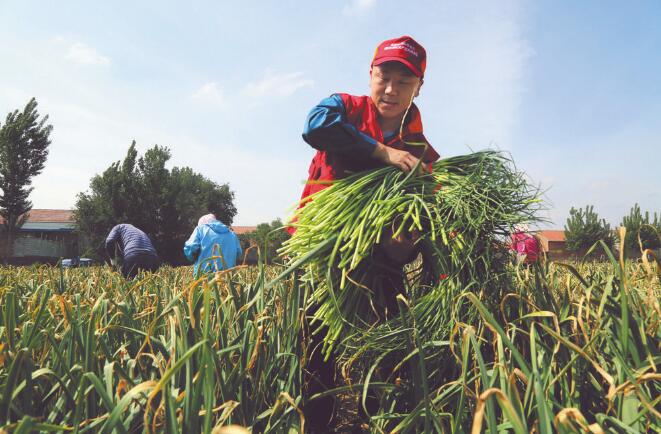 2017年年初,白橋鎮(zhèn)引入“龍頭企業(yè)+基地+合作社+農(nóng)戶”的發(fā)展模式。大蒜深加工龍頭企業(yè)與村里的合作社、大蒜種植大戶簽訂協(xié)議,保價收購大蒜,并將大蒜加工成價值更高、便于運(yùn)輸和儲存的產(chǎn)品,讓當(dāng)?shù)胤N植戶增收。