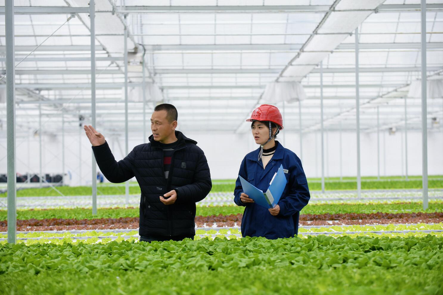 田野上的作物剛開始生長,各種現代化大棚里的蔬菜已經煥發(fā)了盎然的生機。在橫坎頭村的蔚藍智谷植物工廠里,綠油油的菠菜、生菜、小松菜等蔬菜種在整齊的培養(yǎng)基上,一個個高大的溫室大棚連在一起,猶如工廠的車間,工作人員通過智能系統(tǒng)控制著溫度、濕度和營養(yǎng)液輸送。這樣的農業(yè)種植模式打破了傳統(tǒng)的種植概念,將蔬菜種植“工廠化”,品質和市場都得到了良好的保障。