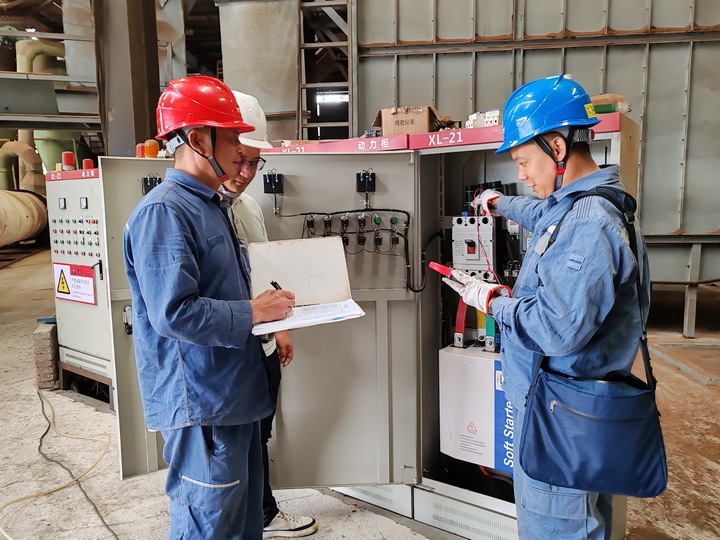圖為南方電網(wǎng)興仁供電局工作人員對(duì)中義新能源燃燒顆粒廠配電設(shè)施進(jìn)行電壓負(fù)荷測(cè)量,制定“錯(cuò)峰用電優(yōu)化方案”。新能源燃燒顆粒在制作中對(duì)于持續(xù)粉碎、溫控烘干、聚米成粒的工業(yè)流程要求很高,長(zhǎng)時(shí)間高負(fù)荷運(yùn)轉(zhuǎn)的機(jī)械設(shè)備和用電高峰期的電壓穩(wěn)定性及電價(jià)成本成了該企業(yè)的一個(gè)生產(chǎn)痛點(diǎn)。