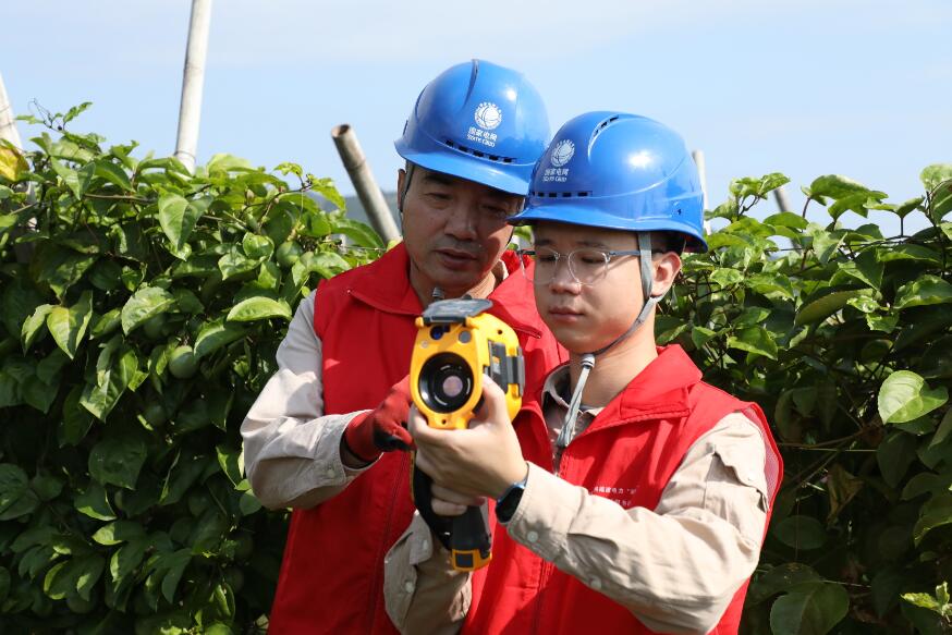 為確保百香果豐收和鮮儲(chǔ)期間用電安全可靠,該公司“雙滿意”共產(chǎn)黨員持續(xù)深化服務(wù),主動(dòng)靠前,了解百香果種植區(qū)域的用電情況,義務(wù)幫助種植戶檢查用電設(shè)備,宣講安全用電知識(shí),同時(shí)對(duì)周邊的線路開(kāi)展特巡測(cè)溫,提高用電的可靠性和穩(wěn)定性。