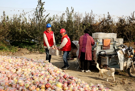 11月26日,國網(wǎng)江蘇電力睢寧縣供電公司王集供電所服務(wù)隊(duì)員來到蘇塘果園幫助果農(nóng)采摘蘋果,并向他們介紹冬季安全用電和電力保護(hù)知識(shí),深受果農(nóng)好評。