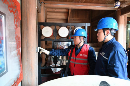 國網(wǎng)邵武市供電公司員工在和平戲院檢查用電設備安全。(朱麗)