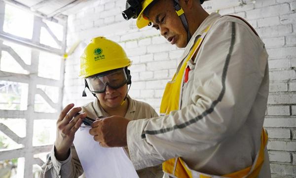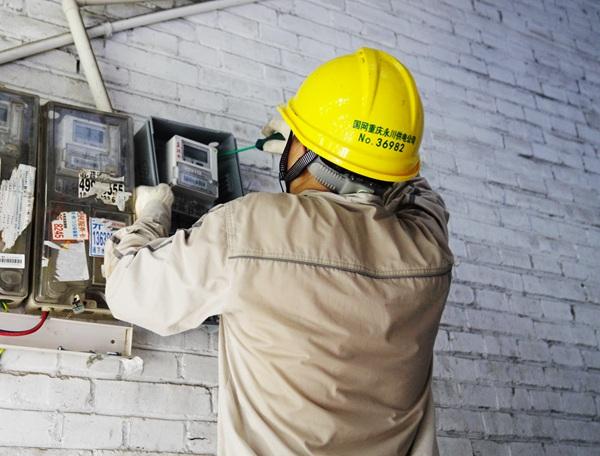 8月6日,網(wǎng)格班員工秦甫濤和同事頭戴安全帽,手持工具箱,肩扛電表箱,快步走進永川郵電小區(qū)。