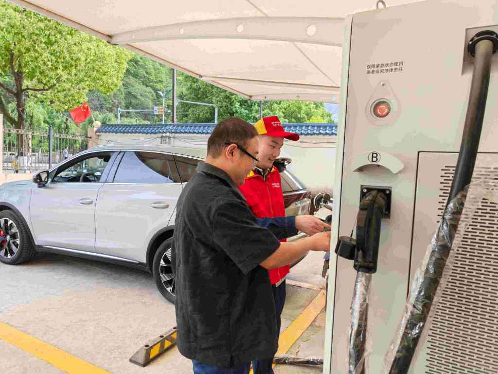 釣魚(yú)觀停車場(chǎng)新能源汽車充電站配備了8個(gè)充電終端,其中直流充電終端6個(gè),交流充電終端2個(gè),每個(gè)充電車位都配有雨棚。本次檢查中,工作人員重點(diǎn)對(duì)充電樁的充電槍是否破損變形、指示燈狀態(tài)及界面顯示是否清晰等進(jìn)行全方位“體檢”。同時(shí),仔細(xì)查看充電樁運(yùn)行數(shù)據(jù),檢測(cè)充電效率,確保設(shè)備穩(wěn)定運(yùn)行,及時(shí)消除各類潛在安全隱患。針對(duì)檢查中發(fā)現(xiàn)的問(wèn)題,服務(wù)隊(duì)工作人員現(xiàn)場(chǎng)進(jìn)行記錄并制定整改措施,能當(dāng)場(chǎng)解決的立即處理,無(wú)法當(dāng)場(chǎng)解決的則安排專人跟蹤落實(shí),確保所有充電樁設(shè)備在“五一”假期期間保持良好運(yùn)行狀態(tài)。