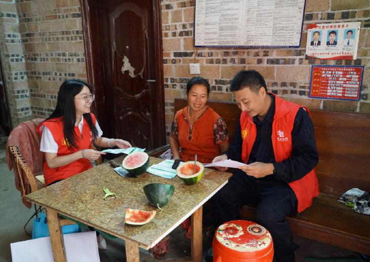 南方電網(wǎng)廣西富川縣公司青年志愿者在村民家宣傳節(jié)能等知識