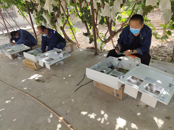 中國電力網(wǎng)訊 “3根電壓線從左至右顏色為黃、綠 .......”8月14日,這是新疆生產(chǎn)建設(shè)兵團(tuán)第一師電力公司荒地供電所張紹軍師傅正在給徒弟張先斌視頻講解電表接線。