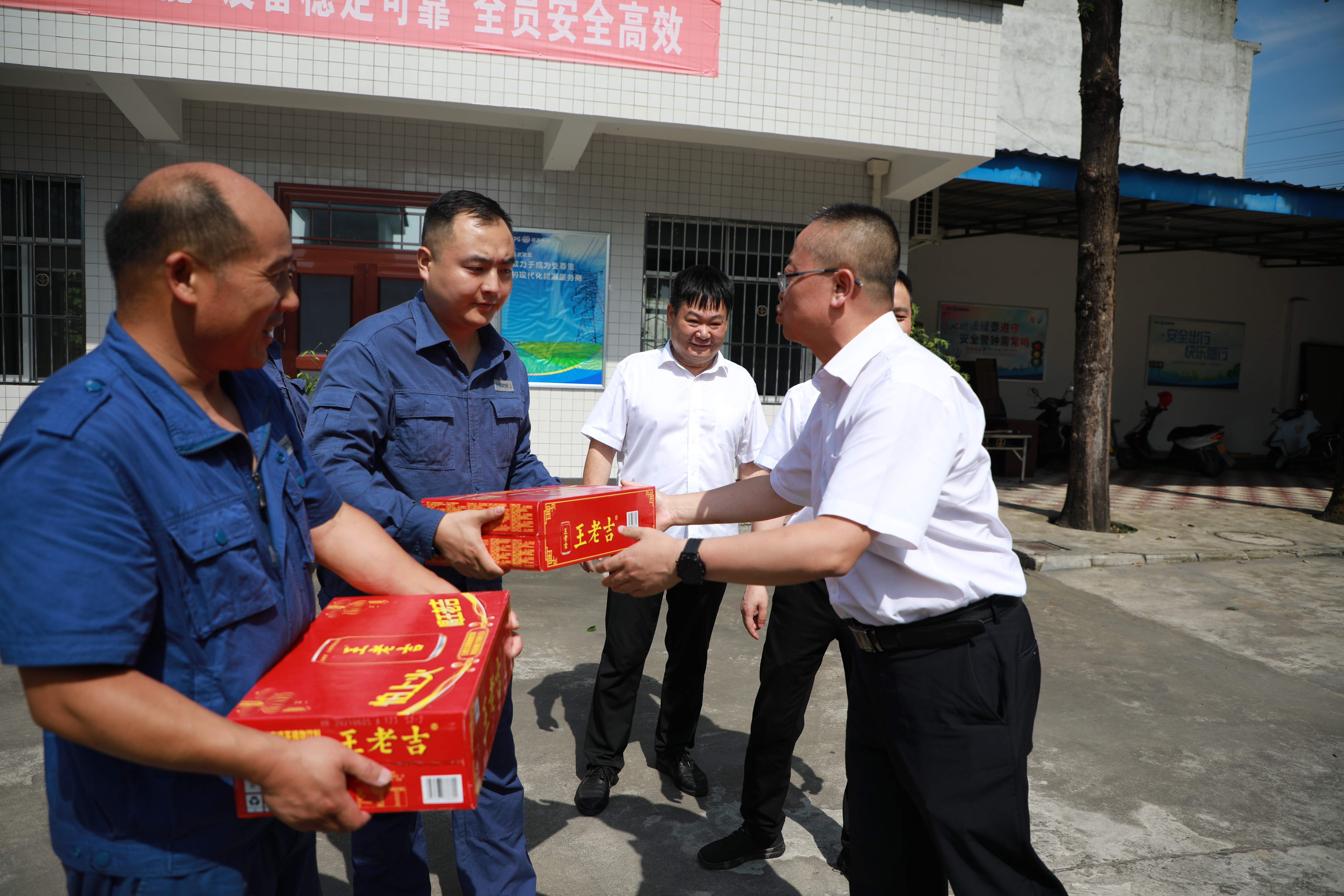 中國(guó)電力網(wǎng)訊(通訊員 周宜潔) 炎炎夏日,酷暑難當(dāng),為關(guān)心關(guān)愛(ài)高溫一線職工的身心健康和勞動(dòng)安全,7月14日,漢中供電分公司副總經(jīng)理石斌強(qiáng)一行赴城固分公司為一線員工“送清涼”。城固分公司經(jīng)理王石、黨支部副書(shū)記汪玉勇陪同慰問(wèn)。