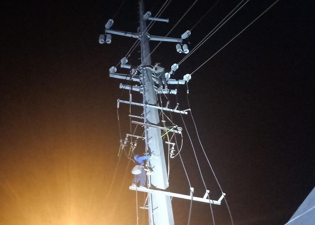 8月2日,國網(wǎng)南充市高坪供電公司工作人員對10千伏東賓線1#桿緊急處缺。(黃萬興 攝)