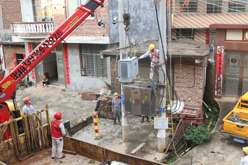 圖為8月18日下午雷雨停后,在寧遠(yuǎn)縣天堂鎮(zhèn)天堂社區(qū)曾家洞位置的10KM桐前線(xiàn)寄干支線(xiàn)故障搶修現(xiàn)場(chǎng),電力黨員先鋒突擊隊(duì)員在更換被雷擊壞的變電器等設(shè)備。