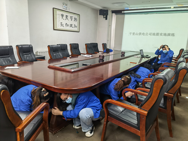 中國(guó)電力網(wǎng)訊 “地震啦,有地震...”,“大家不要慌,先躲在桌子下面或在易于形成三角空間的地方躲避,等待震感消失再進(jìn)行逃生.....注意護(hù)好頭部,抓緊桌子腿”。這是烏海市千里山供電分公司防震演練現(xiàn)場(chǎng)的一個(gè)場(chǎng)景,公司安全員一邊說著一邊蹲下身體躲在桌子下給大家示范。為提高職工應(yīng)對(duì)地震的能力,熟練掌握地震發(fā)生時(shí)的逃生、自救、互救的應(yīng)急避震方法,最大限度地降低地震帶來的損失,該公司于近日組織開展了防震實(shí)地演練,該公司班組長(zhǎng)及相關(guān)人員參加了此次應(yīng)急演練。