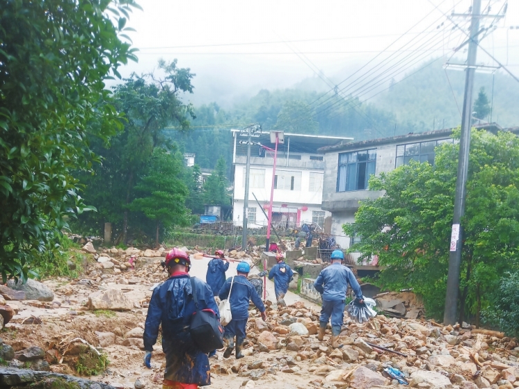 6月18日,廣西電網(wǎng)公司廣西新電力集團融水供電公司黨員突擊隊步行進入融水縣香粉鄉(xiāng)搶險。 潘慶林 攝