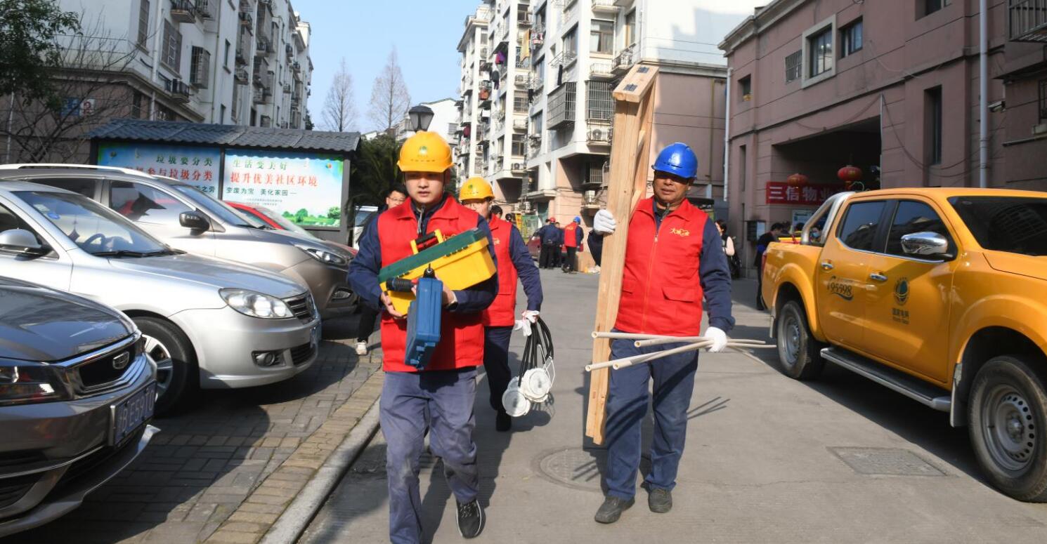 “大家按組領(lǐng)取材料、工器具,上下樓梯一定要注意安全……”當(dāng)天,志愿者們?nèi)艘唤M,穿梭在小區(qū)各個樓道間,布線固定線卡、安裝節(jié)能感應(yīng)燈、屋頂光伏板安裝……在不影響居民出行的情況下,24名志愿者緊鑼密鼓地開展光伏樓道燈改造,履行與社區(qū)居民“點(diǎn)亮黑樓道”的約定,現(xiàn)場一片熱鬧景象。