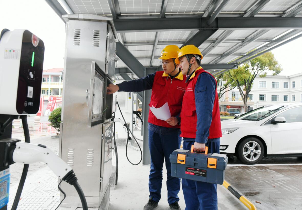 “謝家路村光、充一體化能源站就是其中一項落地項目。”該公司泗門供電所負責人介紹道,該站位于謝家路村南廣場,占地約300平方米,配有2臺60千瓦雙槍直流快充樁、3臺7千瓦交流慢充樁,總充電容量141千瓦,可供7輛車同時充電。值得一提的是,該站棚頂還安裝了光伏板,發(fā)電容量40.5千瓦。