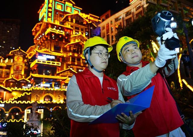 4月30日,在洪崖洞民俗風(fēng)貌區(qū),國(guó)家電網(wǎng)紅巖(市區(qū)渝中)共產(chǎn)黨員服務(wù)隊(duì)對(duì)景區(qū)供電線路及配套電力設(shè)施進(jìn)行夜巡。節(jié)日期間,他們不間斷在解放碑商圈、網(wǎng)紅景點(diǎn)以及重要保電場(chǎng)所開展高精度紅外測(cè)溫及特殊巡視,密切監(jiān)測(cè)供電線路、設(shè)備運(yùn)行狀態(tài),指導(dǎo)商圈、景區(qū)商鋪規(guī)范用電,為游客營(yíng)造良好安全的游玩環(huán)境。