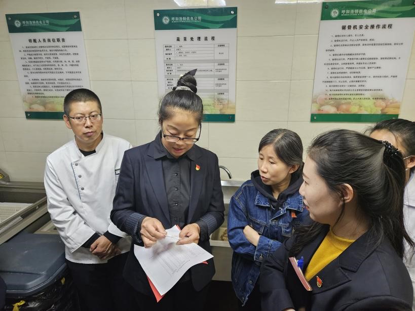 中國電力網(wǎng)訊(通訊員:徐 颯、王 飛)近日,內(nèi)蒙古電力呼和浩特供電公司組織開展職工食堂安全管理專項檢查工作,該公司工會主席武麗芳、紀檢監(jiān)察處王碩處長、調(diào)度管理處劉宇麗書記等工會委員及職工代表組成檢查組,對職工食堂進行巡視,調(diào)研食堂運營和管理情況,綜合事務(wù)中心副主任李加強陪同檢查。