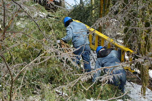該公司組織突擊隊積極應對寒潮, 對受損電力設施進行搶修