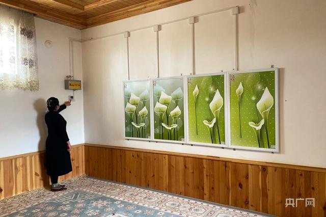 村民卡力比努爾·阿不都許庫正在調(diào)節(jié)電暖設(shè)備溫度(央廣網(wǎng)發(fā)楊林攝)