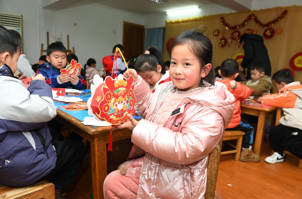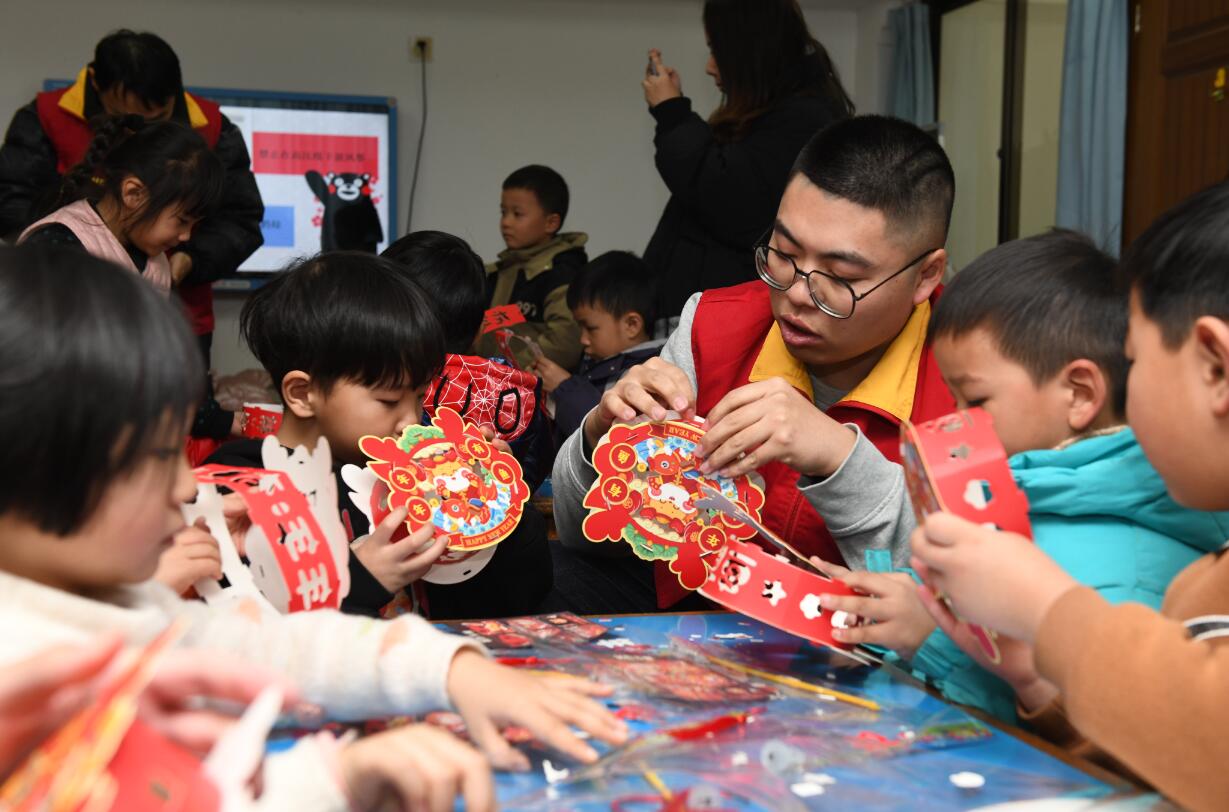 隨后,志愿者與孩子們還分組一起動(dòng)手制作了“龍年小燈籠”,在志愿者的指導(dǎo)一下,整理素材、拼接卡紙、綁流蘇……孩子們一步步依次組裝。制作過(guò)程中,孩子們異常興奮,有說(shuō)有笑,不一會(huì)兒他們就制作完成一盞盞漂亮的小燈籠。看著自己的勞動(dòng)成果,孩子們的笑臉更加燦爛了。