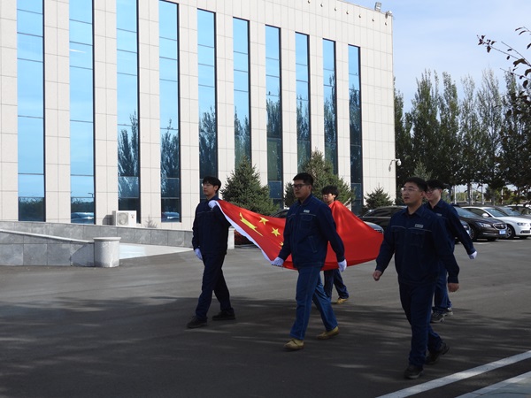 上午8時(shí)30分,升旗儀式正式開始。該公司各團(tuán)支部青年團(tuán)員組成的護(hù)旗手隊(duì)伍邁著堅(jiān)定步伐護(hù)衛(wèi)國(guó)旗走向升旗臺(tái)。伴隨著莊嚴(yán)激昂的《義勇軍進(jìn)行曲》,鮮艷的五星紅旗冉冉升起,廣大青年職工莊嚴(yán)肅立,面向國(guó)旗行注目禮的同時(shí),懷著無比崇敬的心情高唱國(guó)歌,向偉大的祖國(guó)表達(dá)崇高敬意和深情祝福。