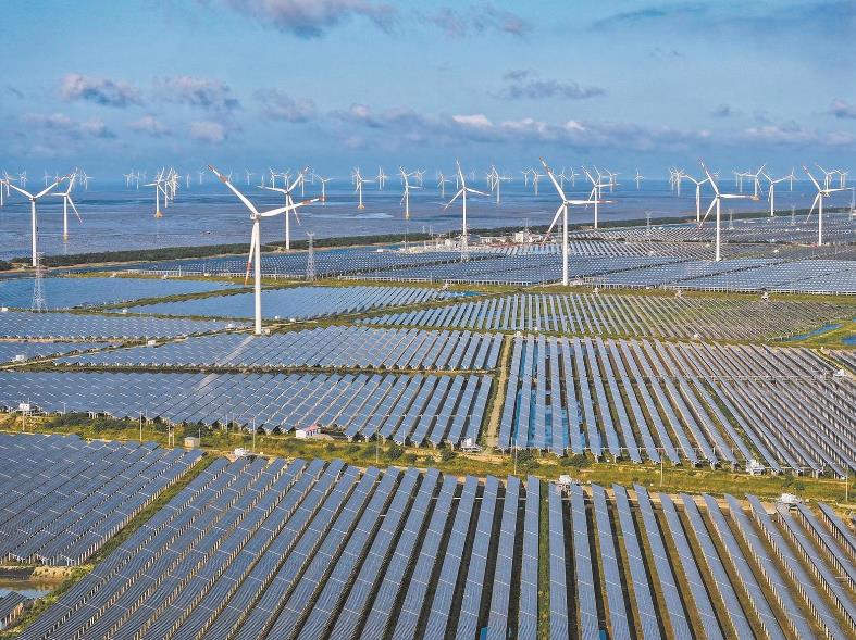 一年四季的海風(fēng),為江蘇省如東縣“吹”來(lái)用之不竭的綠色能源。從2002年起,如東縣立足沿海風(fēng)力資源富集區(qū)的優(yōu)勢(shì),著力推進(jìn)風(fēng)電資源開(kāi)發(fā)。如今,在如東縣86千米的海岸線上,矗立著上千架風(fēng)電機(jī)組。與此同時(shí),如東縣還擁有104萬(wàn)畝灘涂,太陽(yáng)能資源富集。今年1~9月,當(dāng)?shù)匦履茉窗l(fā)電并網(wǎng)電量超過(guò)114億千瓦時(shí),已超過(guò)如東地區(qū)2023年全社會(huì)用電量。