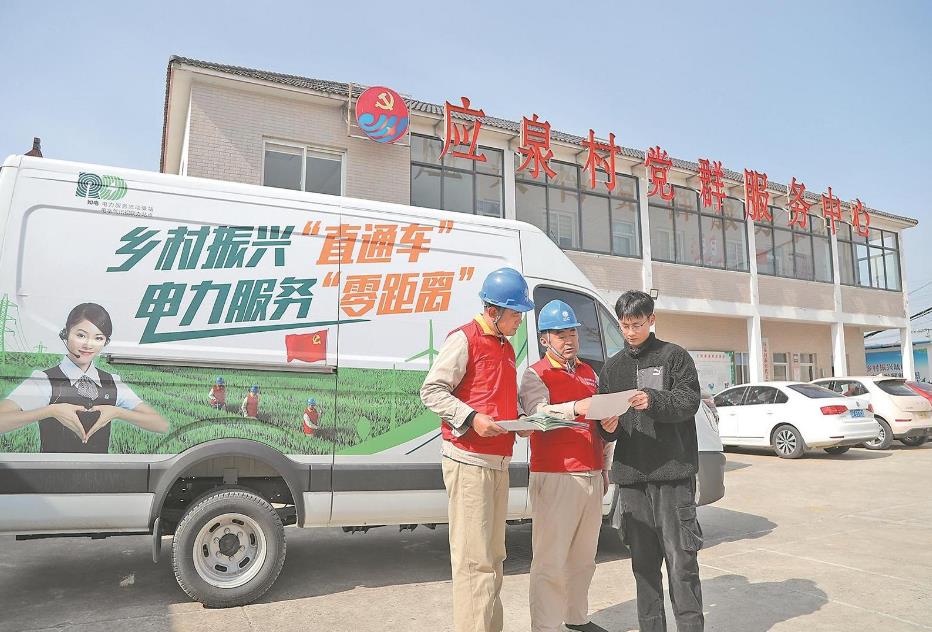2024年4月20日,國家電網(wǎng)江蘇電力(如東公司退役軍人)共產(chǎn)黨員服務(wù)隊(duì)隊(duì)員來到如東縣曹埠鎮(zhèn)應(yīng)泉村開展電力便民服務(wù)。張浩 攝