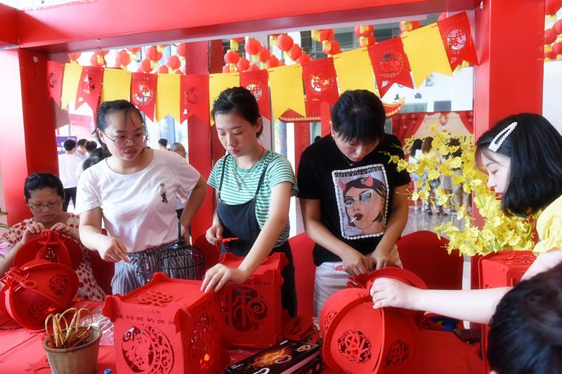 傳統(tǒng)習(xí)俗不只猜燈謎,親手制作的中秋宮燈怎會(huì)缺少,你瞧,她們都在埋頭認(rèn)真地研究這宮燈呢!