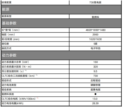 氫電版續(xù)航里程這里也標注的很清楚,它是一款續(xù)航能達到730km的氫能源電動車,車身尺寸和純電及增程版本保持不變。同樣也采用了后驅(qū)布局,并且匹配和增程式車型一樣的28.39kWh動力電池,換句話說就是氫燃料版車型將增程式車型用于發(fā)電的發(fā)動機替換為用于發(fā)電的氫燃料。而氫燃料相比發(fā)動機而言最大的優(yōu)勢則在于排放更環(huán)保、噪音控制更好,以及未來的使用成本上。