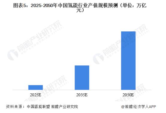 根據(jù)中國氫能聯(lián)盟資料,預計到 2050 年,中國氫能產業(yè)產值規(guī)模有望達到 12 萬億元,將成為引領經濟發(fā)展的新增長極。