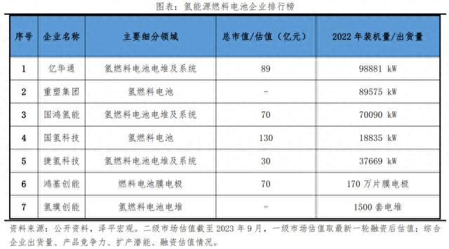 國鴻氫能,氫燃料電池產(chǎn)品和系統(tǒng)解決方案龍頭,2022年燃料電池系統(tǒng)新增獨(dú)角獸。估值70億元,嘗試港股IPO,有望成為繼億華通之后第二家在香港上市的氫燃料電池企業(yè)。市場表現(xiàn)看,公司的燃料電池技術(shù)已廣泛應(yīng)用于交通、分布式發(fā)電等領(lǐng)域的商業(yè)化落地,子公司鴻力氫動(dòng)2022年燃料電池系統(tǒng)裝機(jī)量超過6萬千瓦,市占率15%,排名第三。產(chǎn)品優(yōu)勢看,公司已實(shí)現(xiàn)核心原材料與生產(chǎn)裝備的國產(chǎn)化及生產(chǎn)制造的高質(zhì)量規(guī)模化,氫燃料電池電堆生產(chǎn)設(shè)施全球領(lǐng)先。