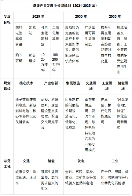 2022年3月23日的《氫能產(chǎn)業(yè)發(fā)展中長(zhǎng)期規(guī)劃(2021-2035年)》,明確氫能的三大定位:未來(lái)國(guó)家能源體系的重要組成部分,用能終端實(shí)現(xiàn)綠色低碳轉(zhuǎn)型的重要載體”,戰(zhàn)略性新興產(chǎn)業(yè)和未來(lái)產(chǎn)業(yè)重點(diǎn)發(fā)展方向。除了《氫能產(chǎn)業(yè)中長(zhǎng)期規(guī)劃(2021-2035年)》,幾乎是同一時(shí)間出臺(tái)的《十四五能源體系規(guī)劃》也指出了氫能行業(yè)規(guī)?;l(fā)展對(duì)全球能源體系的深刻變革的影響,其表述為:新型儲(chǔ)能和氫能有望規(guī)?;l(fā)展并帶動(dòng)能源系統(tǒng)形態(tài)根本性變革,構(gòu)建新能源占比逐漸提高的新型電力系統(tǒng)蓄勢(shì)待發(fā),能源轉(zhuǎn)型技術(shù)路線和發(fā)展模式趨于多元化。